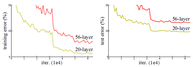 이를 보면 더 Deep한 Network가 오히려 더 Shallow한 Network보다 낮은 성능을 기록하는 문제를 확인할 수 있습니다.